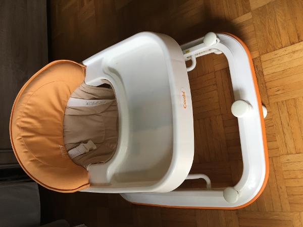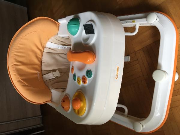 Combiの歩行器を無料でお譲りします。メロディーが鳴るボタンは作動しませんが、歩行器としては問題なく使用できます。またおもちゃトレイとキャスターを取り外すとテーブル付きの椅子としても使用できます。