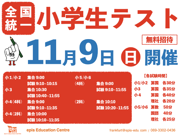 エピスでは毎年、四谷大塚主催の全国統一小学生テストを実施しています。