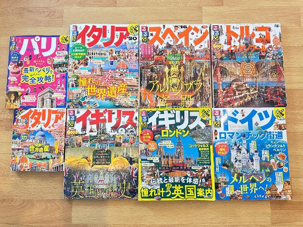 旅行本をお譲りします。地球の歩き方、るるぶ、ことりっぷ、arucoなど各種1冊2€、5冊8€、6冊以上のまとめ買いの場合は6冊以降1冊1.5€です。ご希望の本をご指示ください。受け渡しは日本人学校周辺または当方自宅近辺にてお願いします。