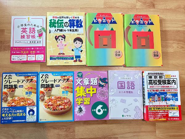 小中学生向けの問題集やワーク、受験案内をお譲りします。