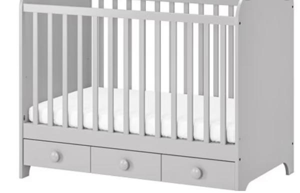 IKEA 製品です。もう廃盤になってしまったようですが、似た製品はこちらです。https://www.ikea.com/de/de/p/gonatt-babybett-mit-schubfach-weiss-90467089/