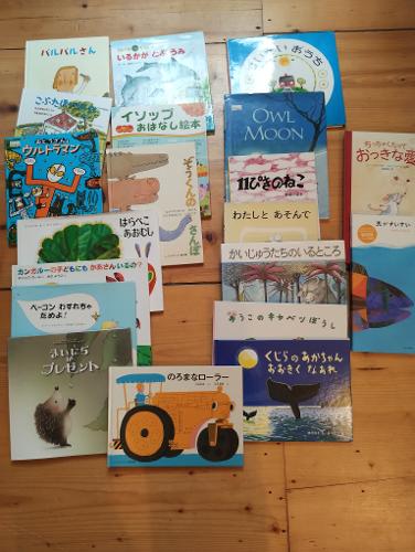 写真に載っている絵本と木のおもちゃをまとめて70ユーロで買い取って頂ける方を探しています。写真にはない絵本があと3冊あり、合計75冊ほどあります。状態が良いものもあれば、こちらで買取ったものもあるので様々です。その点ご理解頂ける方へ、ノークレームノーリターンでお願いします。まとめ買い&オッフェンバッハの自宅にて引き取りのみ。