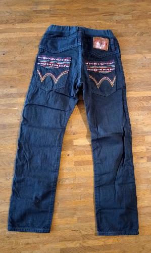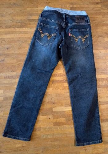 ① 8€ EDWIN 楽々リブウエストデザインデニム カラー ブラックユーズド 150 ㎝(1-2回着用)
