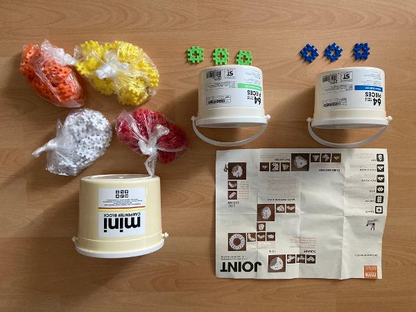 6) SOZ ミニカーペンターブロック、64ピースx 6色(青とオレンジは1こ不足): セットで€25、状態良: €25