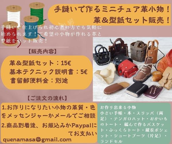 すべて手縫いで仕上げられ、型紙と革をセットで、販売中!