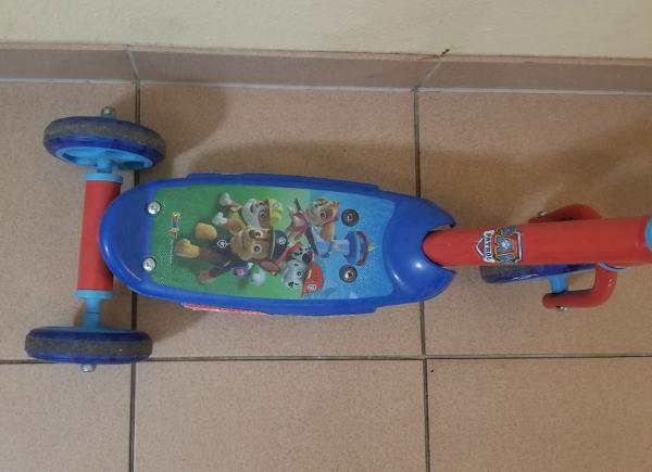 パウ・パトロールのキックボード3輪車を5ユーロでお譲りします。小さいシールが3枚貼られています。アナ雪のキックボードは使用感がだいぶある為、無料とさせて頂きます。