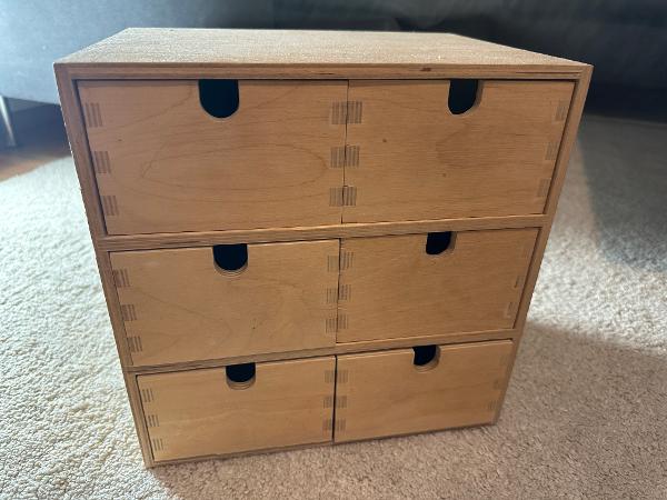小さな引き出しが6つついたカワイイ収納箱です。子供部屋で使用しました。