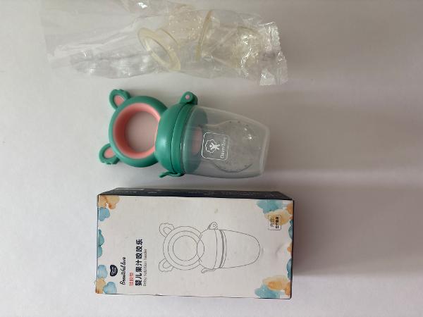 名前よくわからないのですが、シリコン容器の中にカットしたバナナやイチゴやお粥などを直接入れて、赤ちゃんはおしゃぶりのように吸い出して食べるもの、みたいです。使うチャンスがありませんでした。