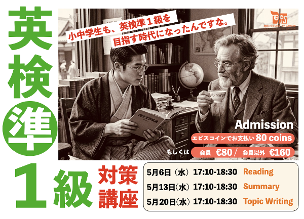 5月の休講明けより、3週に渡り「英検準1級講座」を実施いたします。